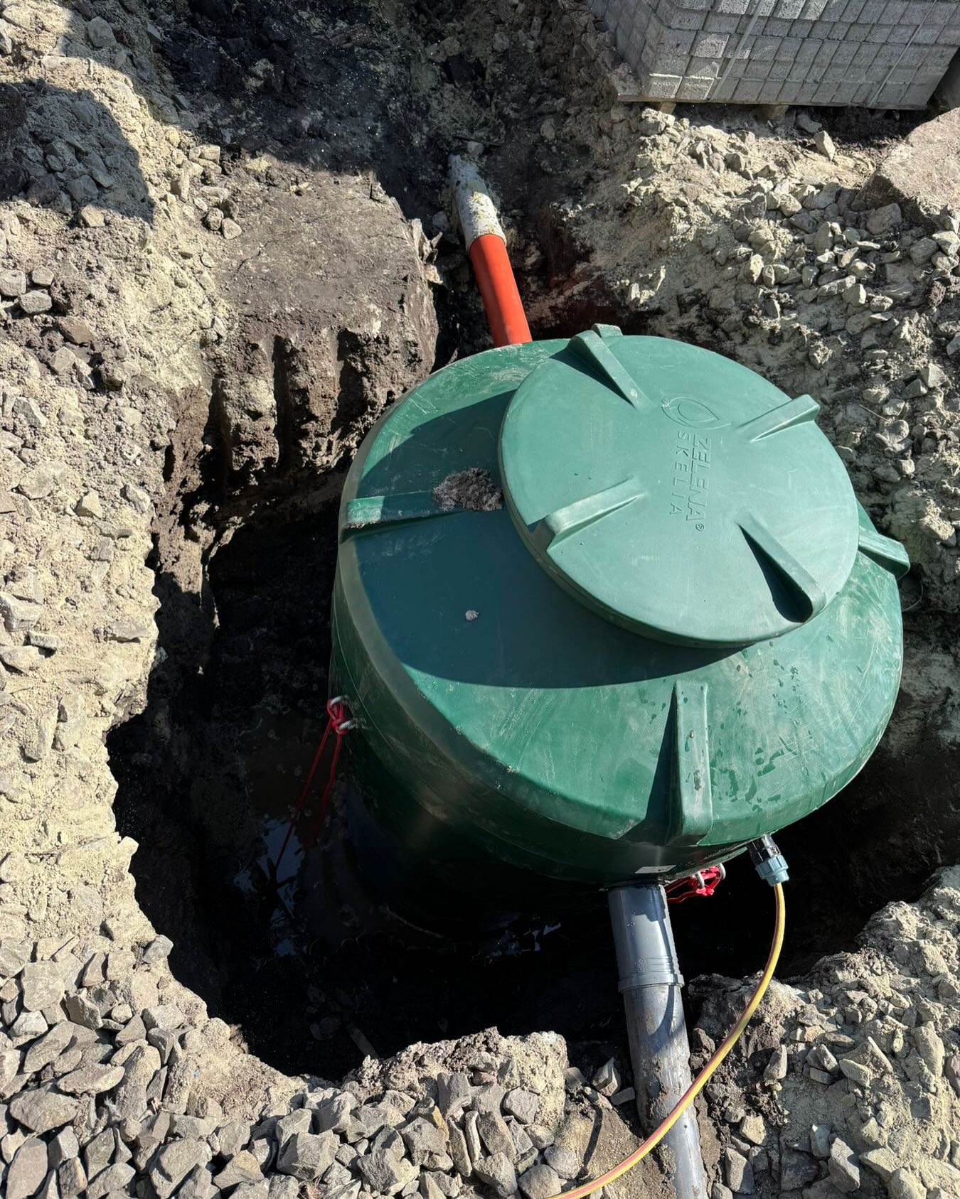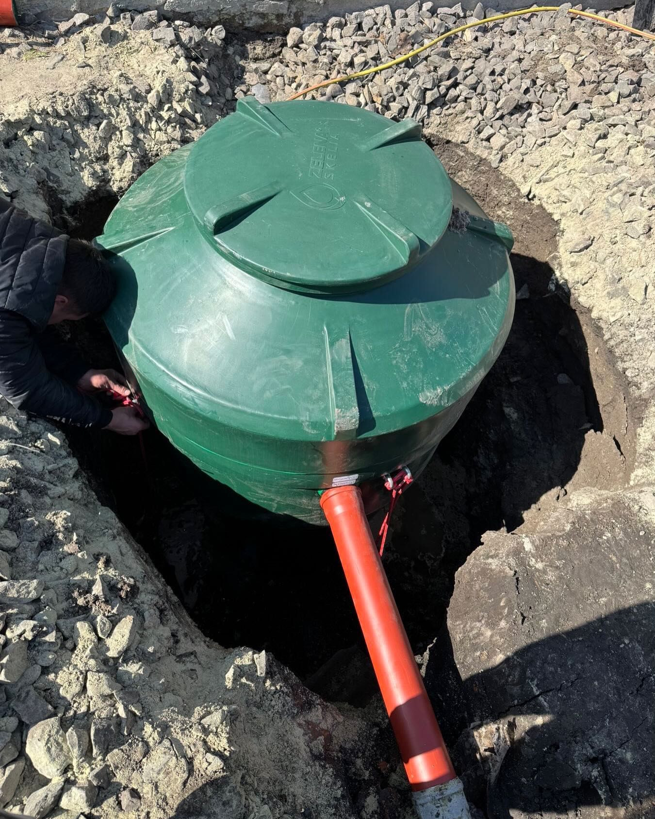 Змонтували в с. Комарно біля Львова, професійну автономну каналізацію продуктивністю до 800 л стоків/добу. Планування території дозволило розташувати систему близько до будинку та під’єднати короткою прямою трубою, що гарантує безпроблемну подачу стоків у систему та знизило витрати на монтажні роботи. Очищена вода відводиться у фосу.