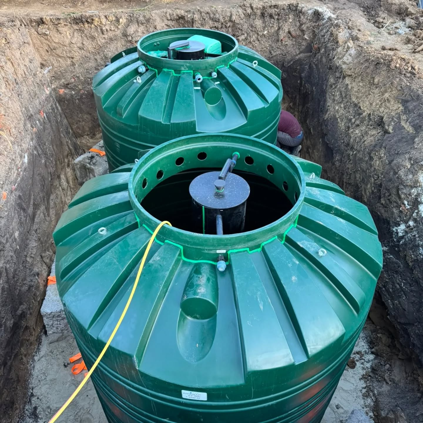 Змонтували систему автономної каналізації продуктивністю до 200 людей, для багатоповерхівки. Система передбачає використання бетонних первинних відстійників, біофільтр та вторинний відстійник.